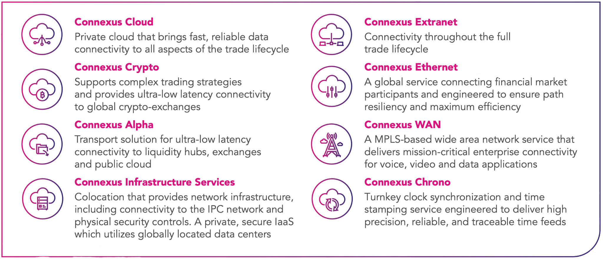 IPC’s Connexus®-platform er centrum for global finansiel kommunikation. Den er udviklet til at imødekomme de ekstremt krævende behov i kapitalmarkederne og leverer sikker, højtydende forbindelse designet til trading virksomheder, likviditetsudbydere, applikationsleverandører, markedsdataudbydere og flere.